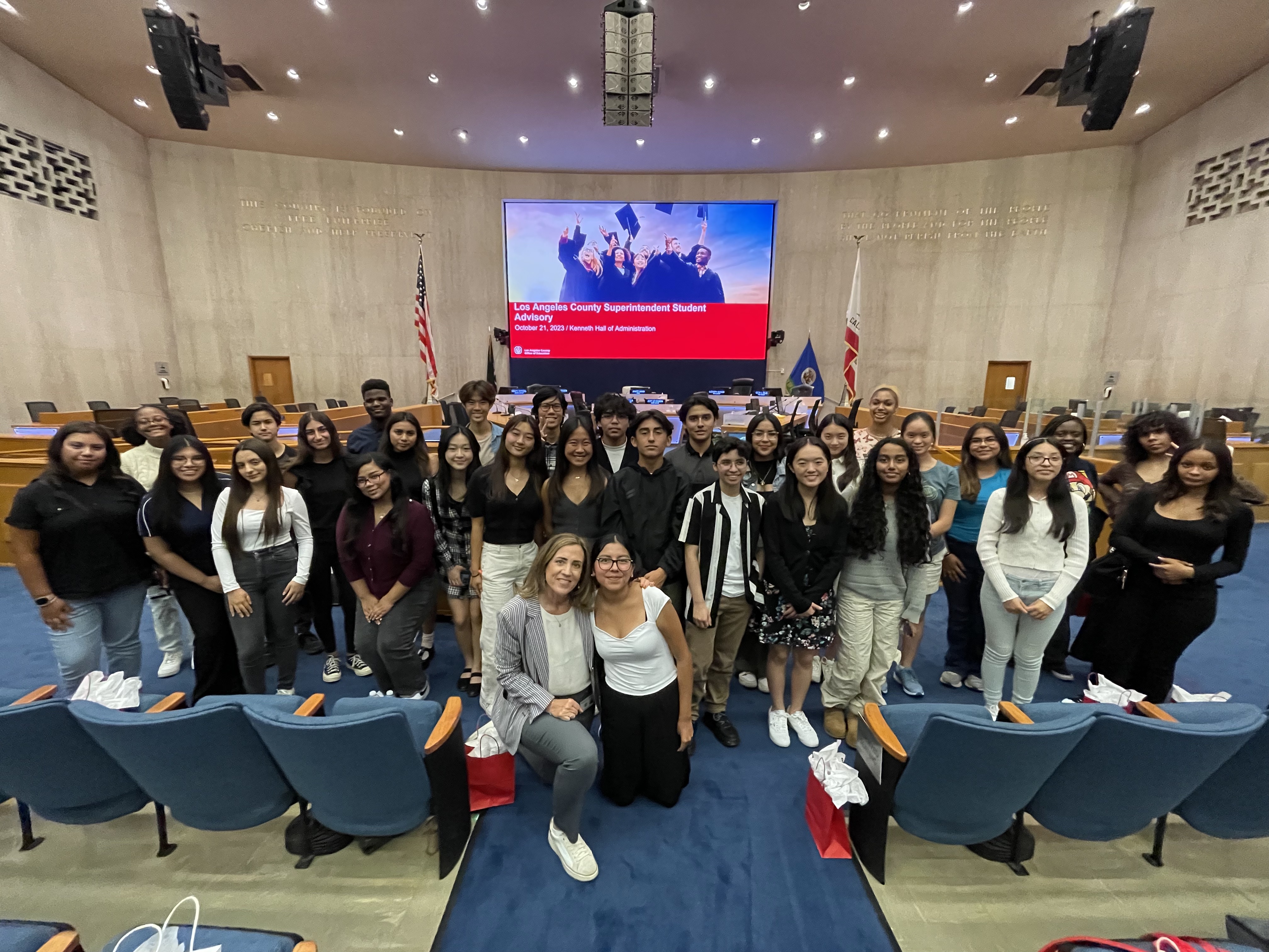 Los Angeles County Superintendent of Schools Dr. Debra Duardo held her first in-person meeting of the school year with her new cohort of student advisors. The new group has 18 returning and 29 first time student leaders who will serve on her 2023-2024 Student Advisory Council (SAC). This covers over 30 districts and four charter schools. This council was created to bring together voices from all corners of LA County, providing a platform for students to share feedback, experiences and perspectives on various issues affecting our schools and communities.